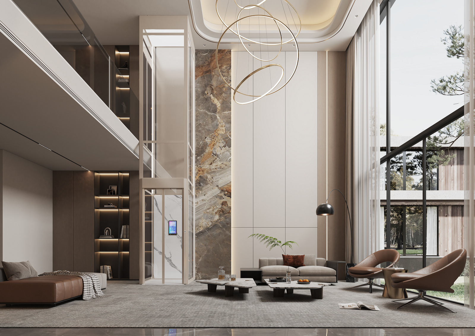 针对无底坑、复式楼别墅,可选择自带井道框架的升降平台梯,如一颗“垂直胶囊”贴墙安装;有井道或安装电梯空间足够,首选曳引式别墅(家用)电梯(由钢丝绳或钢带驱动)。