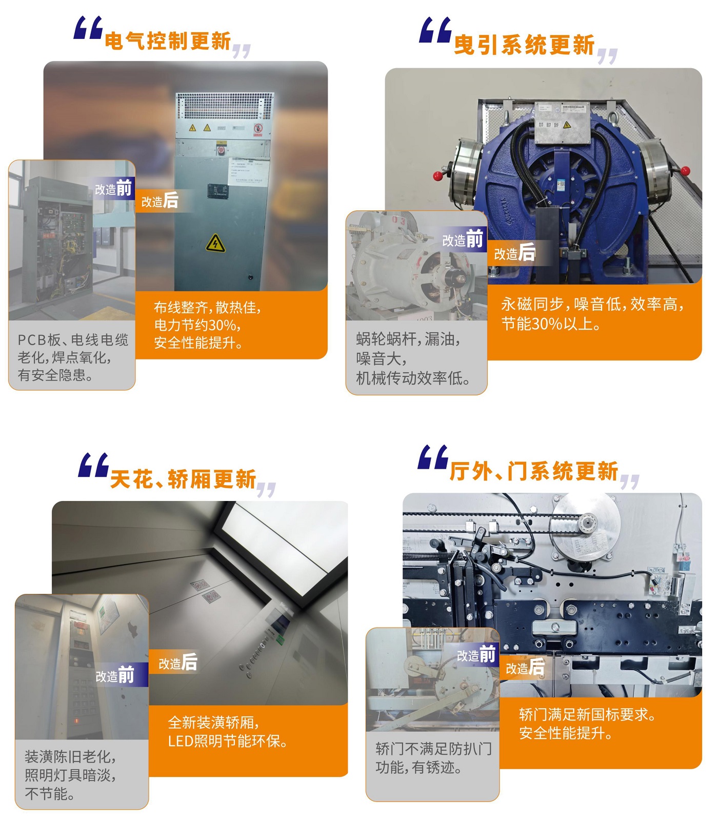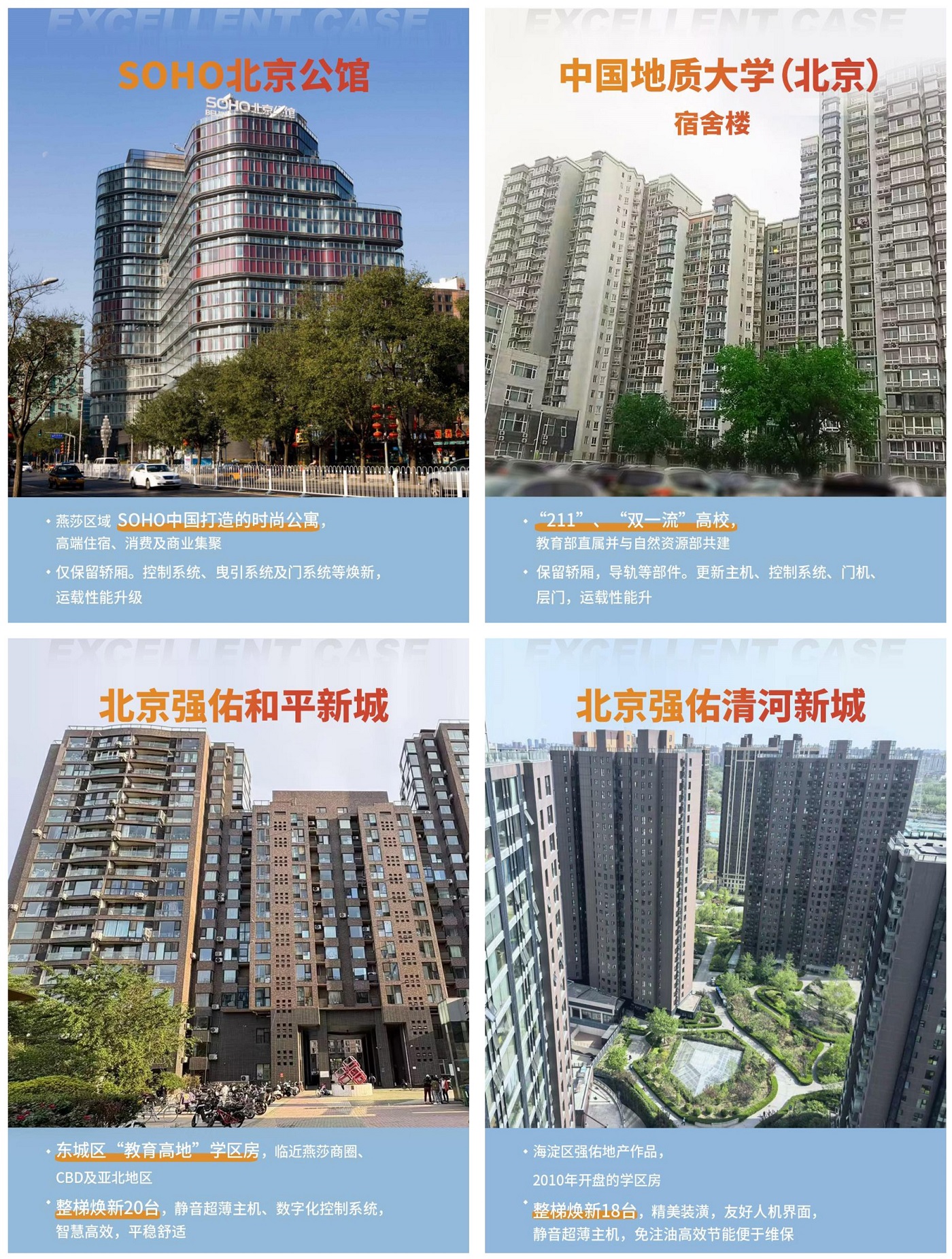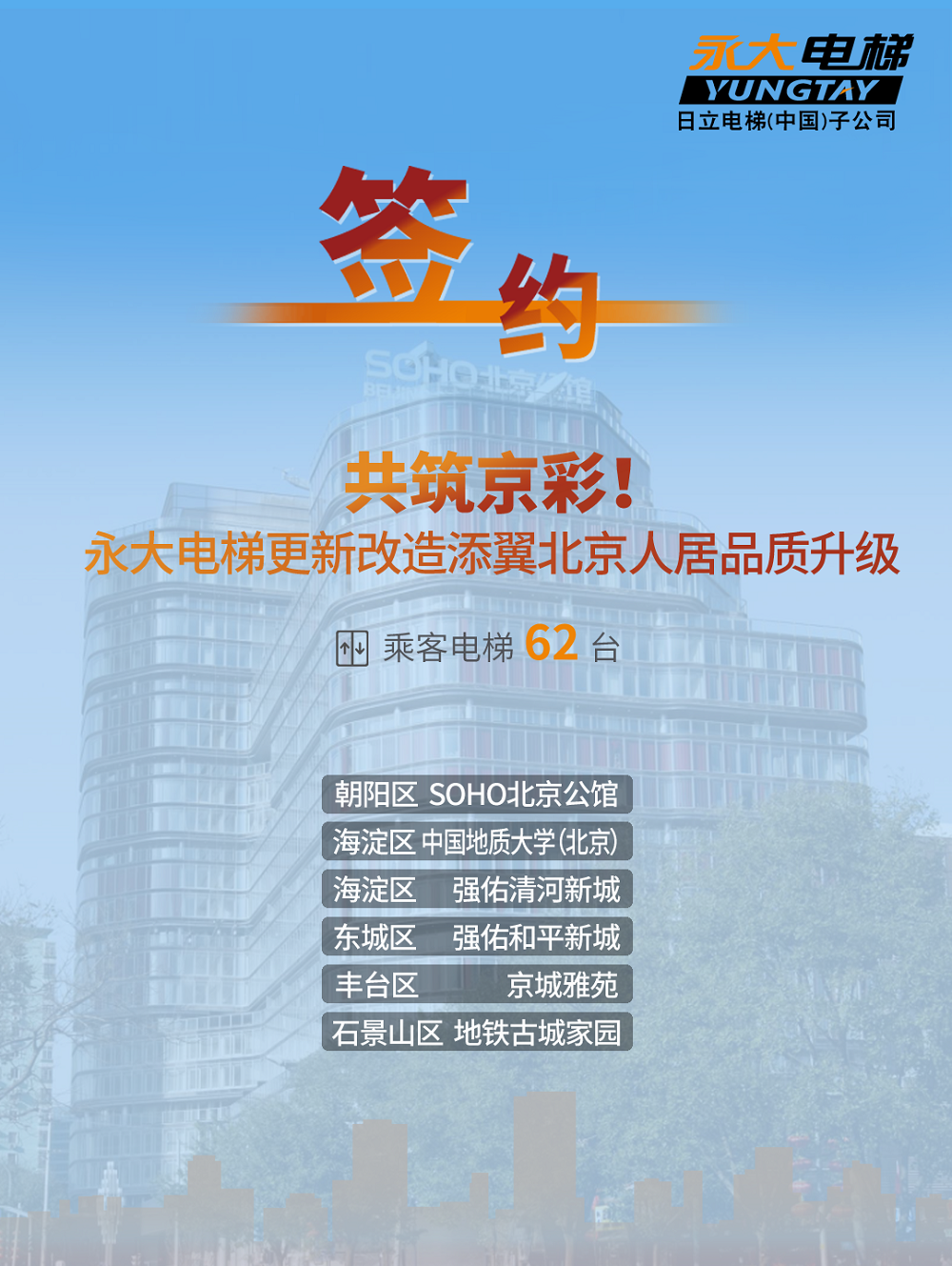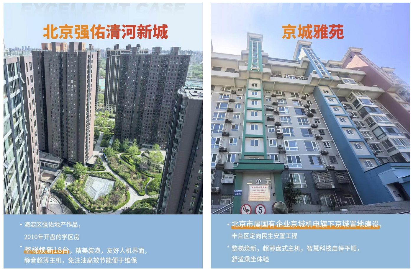 期间,永大电梯也积极响应和参与,先后为北京多个社区62台老旧电梯落实更新改造,根据楼宇具体条件,我们适当采用整梯或者部分焕新解决方案,让设备在外观、系统性能与效率、安全和节能方面,都有全面升级,提升市民的居住品质。永大电梯更新改造为您带来哪些价值?永大电梯更新改造优势
