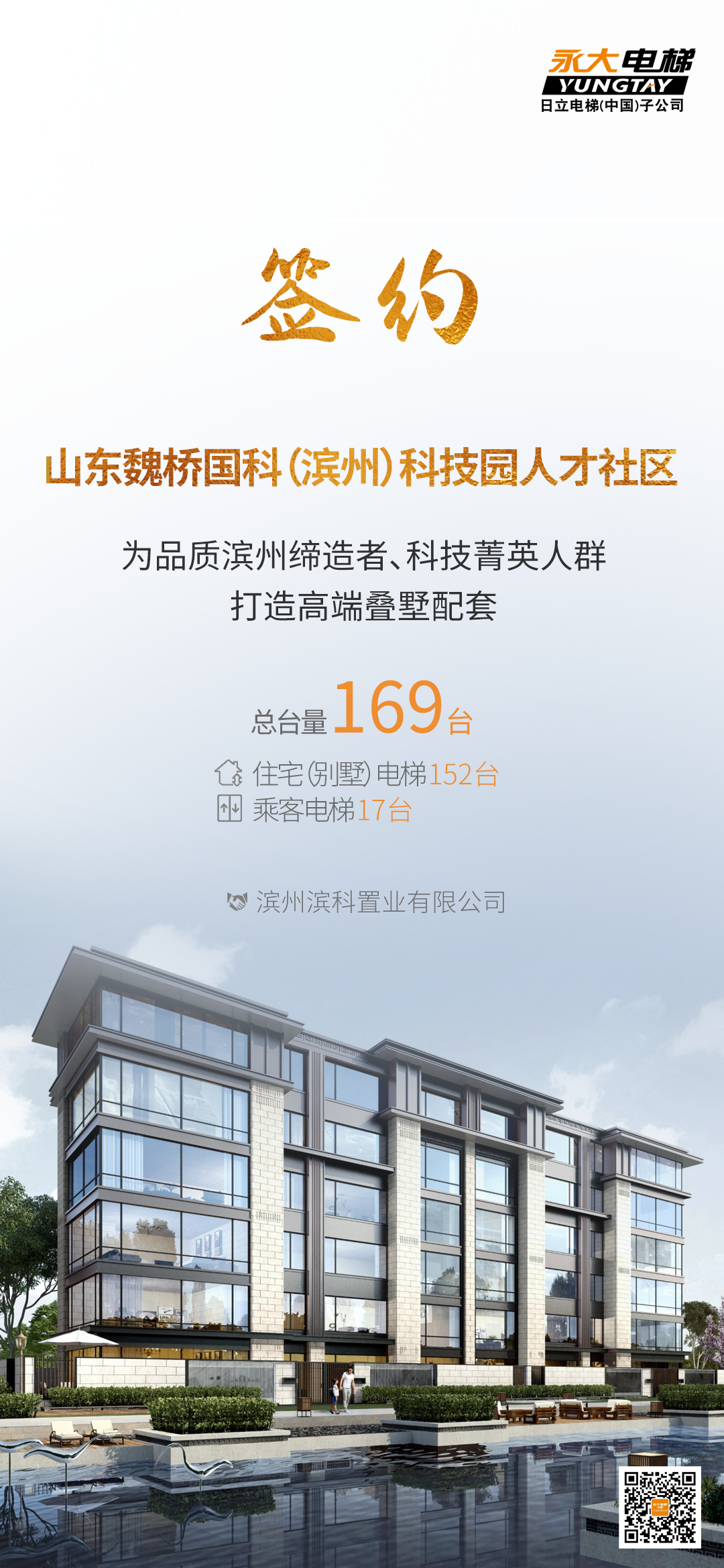 永大电梯以科技之力,艺术之美,让墅居生活从容有度。为科技园人才社区打造智慧流畅的出行体验,助力滨州科技发展和城市腾飞之梦。